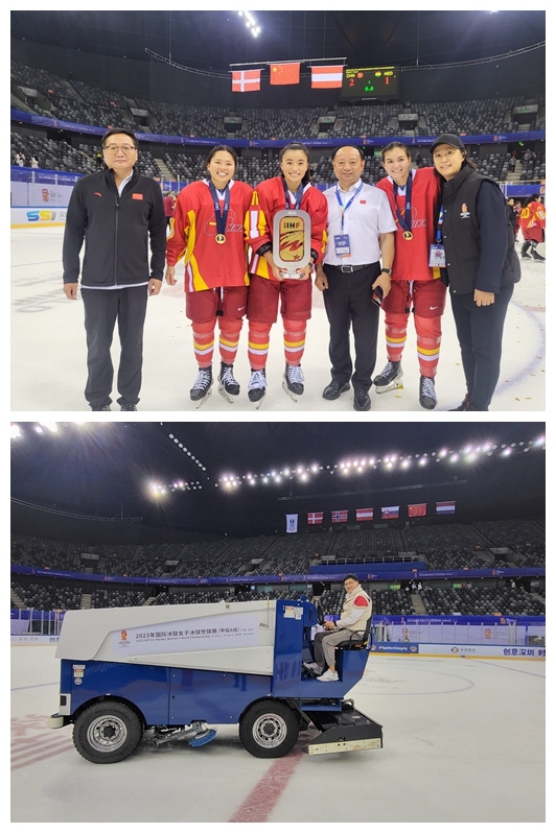 我校师生积极参与助力2023女冰世锦赛各项工作,以于柏巍(队长)、方新、孔明会为代表的5名学生是此次国家女子冰球队主力队员。在全国选派的49名技术官员团队中,有16名是我校师生,其中刘春华教授担任国内技术官员裁判长。此外,我校付博等2名技术人员参与赛会场地制冰保障。