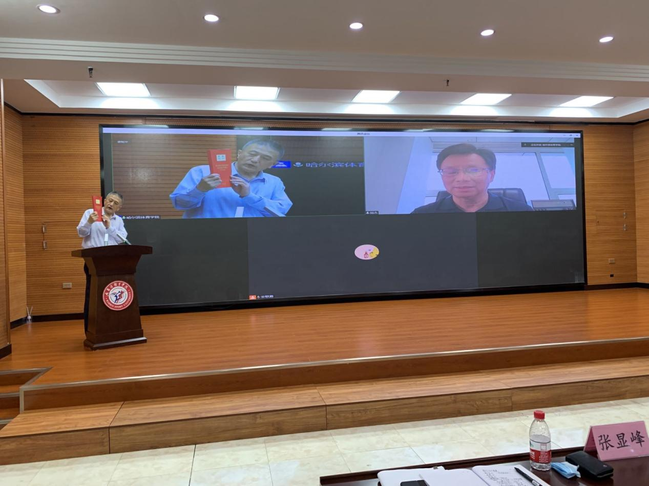 最后,陈德明校长以《哈尔滨体育学院服务助力北京冬奥会冬残奥会纪实集锦》为蓝本,向周杰主任介绍了我校师生积极投身冬奥会事业的光荣事迹,并将此书赠与周杰主任。