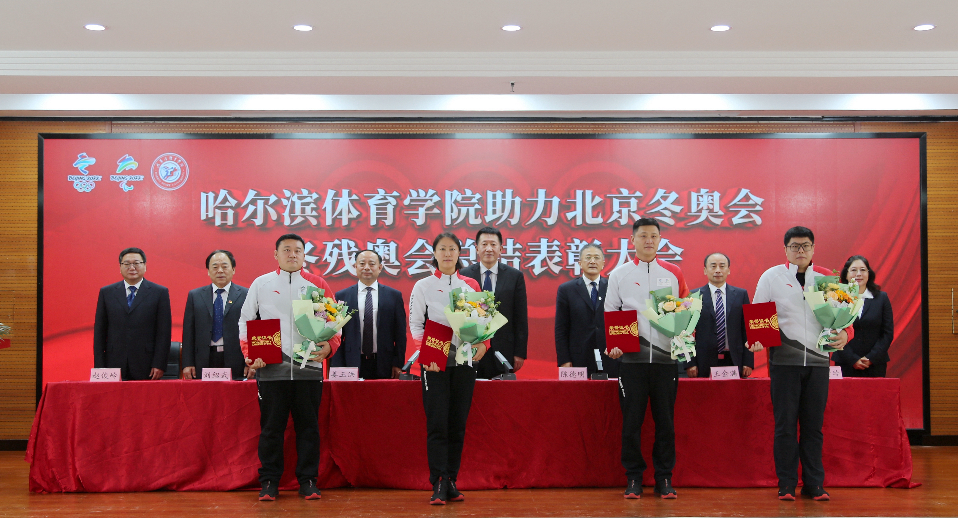 他指出,举办北京冬奥会、冬残奥会是以习近平同志为核心的党中央作出的重大决策,是我国重要历史节点的重大标志性活动。在习近平总书记亲自谋划、亲自部署和亲自推动下,我国秉承“绿色、共享、开放、廉洁”的办奥理念和“简约、安全、精彩”的办赛要求,在世纪疫情与百年变局交织叠加的艰难时刻,向世界奉献了简约、安全、精彩的北京冬奥会、冬残奥会,兑现了“两个奥运”同样精彩的庄严承诺,彰显了奥林匹克精神和中华体育精神。在北京冬奥会、冬残奥会筹办过程中,我校认真贯彻落实习近平总书记重要指示精神和省委、省政府“实现三个40%”的目标要求,把服务保障备战作为重大政治任务,坚持“北京冬奥需要什么、我们就支持什么,北京冬奥需要我们做什么、我们就做好什么”,做到了举全校之力支持、服务、奉献、参与冬奥。我校有96名师生助力服务冬奥,向党和国家交出了冬奥会3金2铜,冬残奥会12金6银10铜的优异答卷,人才贡献率居全国体育院校之首,成为唯一一所荣获“突出贡献集体”荣誉称号的高校,教练员朱德文被授予“北京冬奥会、冬残奥会突出贡献个人”称号。这些成绩的取得,全面彰显了具有66年办学历史的哈体院在人才培养、竞赛训练、科技助力、场馆保障等方面的精湛水平,充分证明了哈体院作为冰雪体育强校在冰雪体育研究和冰雪运动实践方面的雄厚实力。我们哈体人应该为此骄傲和自豪!