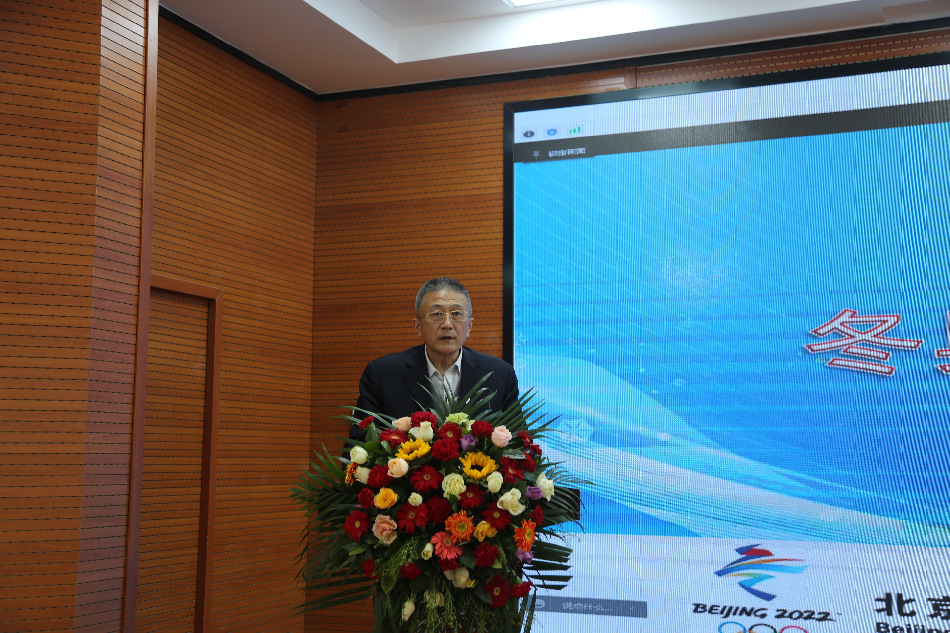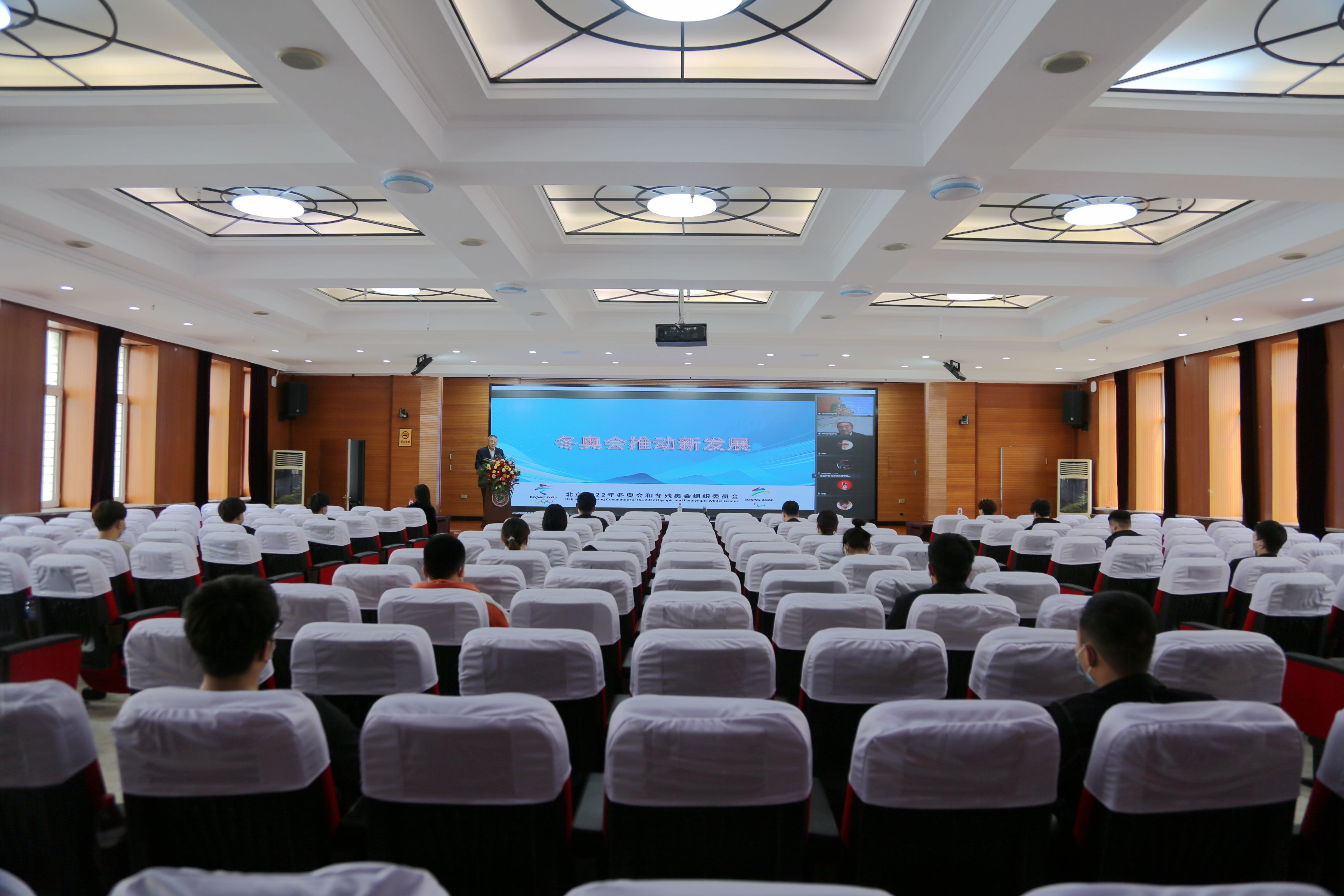 2022年4月20日14:00,冬季奥林匹克学院在尚德楼三楼学术报告厅邀请中国雪橇协会主席赵英刚作了题为《冬奥会推动新发展》专题讲座。讲座采用线上与线下结合的方式进行。