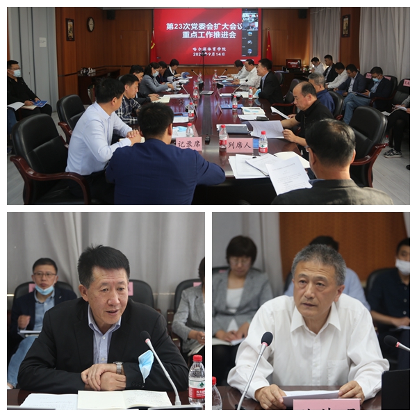 为进一步统一思想,切实增强紧迫感和使命感,把主要精力集中到重点工作推进上来,把工作重心落实到抓具体任务上来,把智慧和力量凝聚到促学校发展上来,确保完成好全年目标任务,确保“十四五”开好局、起好步,9月14日下午,学校召开2021年第23次党委扩大会议暨重点工作推进会。校党委书记兰景力主持会议并讲话,同时针对每位校领导的汇报分别提出了意见和建议;党委副书记、校长陈德明简要总结上半年工作情况,指出存在的问题,并对下一步重点工作作以安排。主会场设在尚德楼900会议室,学校领导、党政部门主要负责人在主会场参会,教学教辅部门负责人及各二级学院党总支书记、院长参加线上会议。
