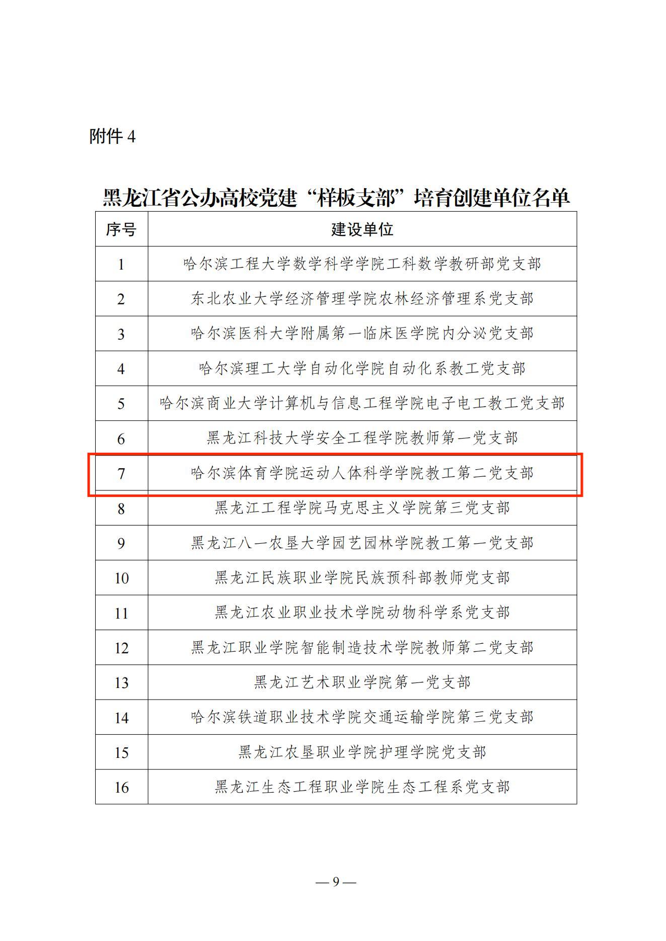 日前,教育工委公布了黑龙江省公办高校党建“示范创建”工作遴选结果,我校冬季奥林匹克学院教工第一党支部和运动人体科学学院教工第二党支部分别获评黑龙江省公办高校党建“样板支部”创建单位和培育创建单位。