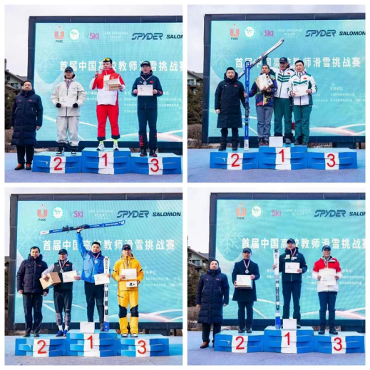 由中国大学生体育协会主办的首届中国高校教师滑雪挑战赛于3月15日在吉林省万科松花湖滑雪场开赛。本次赛事是中国大学生体育协会首次举办的冬季项目教师比赛。来自北京大学、哈尔滨工业大学、北京体育大学等55所高校的146名教师报名参赛。我校选派了7名教师参加教授组和教师甲、乙组单板和双板大回转的比赛。
