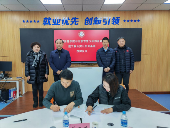 关富余代表学校与北京市青少年体育联合会签定就业实习实训基地合作协议。