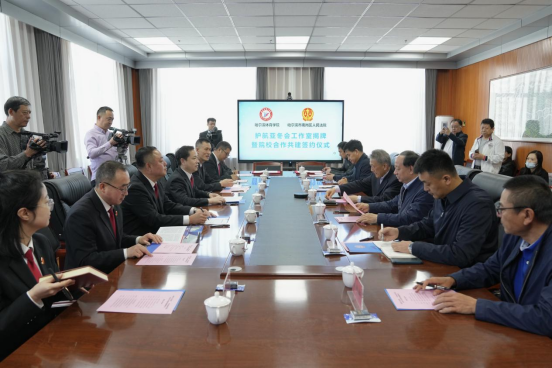 5月23日,我校与哈尔滨市南岗区人民法院举行“护航亚冬会工作室”揭牌暨“法校合作共建”签约仪式。党委副书记、院长陈德明与南岗区法院党组书记、院长常鹤共同为“护航亚冬会工作室”揭牌。