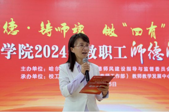 6月6日下午,由校工会、人事处(党委教师工作部)、教师教学发展中心联合举办的“修师德·铸师魂·做‘四有’好老师”2024年教职工师德师风演讲比赛在崇德楼学术报告厅举行。学校党委书记兰景力,党委副书记姜玉洪,副校长齐景嘉、王广贵,工会主席赵俊岭,学校副处级以上干部以及师生代表共计200余人观看了比赛。