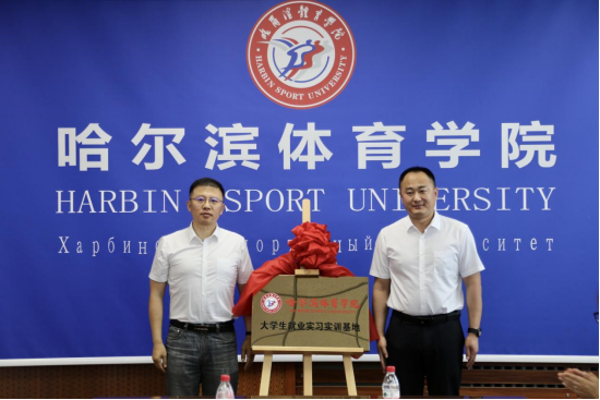 建华区委常委、组织部部长姜雅秋与哈尔滨体育学院教务处处长姜春平共同为“大学生就业实习实训基地”揭牌。