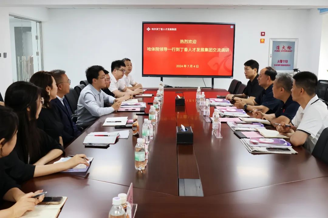 姜玉洪代表学校对丁香人才发展集团的热情接待表示感谢,对人才集团运营发展情况给予了充分肯定,并介绍了学校的办学特色、专业设置、校企合作等情况,重点介绍了学校在助力北京冬奥会、冬残奥会,备战2025年第九届亚冬会、2026年米兰冬奥会和推进上合组织建设等方面做出的贡献。希望双方进一步深化校企共赢、专业共建、人才共育、资源共享合作机制,实现产教良性互动、校企优势互补,推动校企共同实现融合发展、协同发展与创新发展。