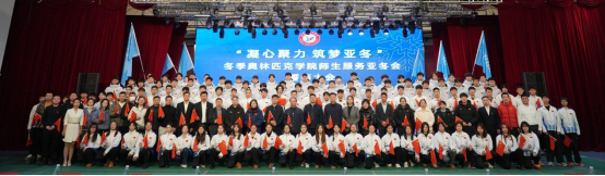 冬奥学院党总支副书记张大德带领全院服务亚冬会师生庄严宣誓,誓言秉承“奉献、友爱、互助、进步”的志愿者服务精神,立志以实际行动服务亚冬、贡献“哈体”力量。