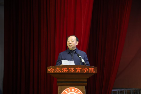 校党委副书记、校长姜玉洪在致辞中高度肯定了冬奥学院在冰雪人才培养和冬奥项目方面取得的成就,并对全体即将投身亚冬会志愿服务工作的师生表达了深切的慰问。他指出,亚冬会不仅是展示冰雪文化和哈尔滨风采的重要平台,更是我校师生展示责任与担当的历史机遇。姜校长提出三点期待:一是守初心,做亚冬会最坚定的支持者;二是展风采,做冰雪文化的传播者;三是创佳绩,做哈尔滨冰雪故事的书写者。他鼓励广大师生在服务中迎接挑战、实现自我成长,书写属于自己的冰雪篇章,为亚冬会的成功举办贡献智慧与力量。