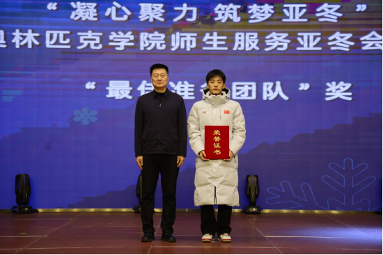 学院对一批优秀志愿者和团队进行了表彰,并颁发了“志愿服务最美人物奖”“最佳准备团队奖”,以及“党员志愿者先锋奖”绶带,充分展现了冬奥学院在亚冬会志愿服务中的组织力与号召力。此外,志愿者团队主管聘书的颁发仪式为进一步规范和推动志愿服务工作的顺利开展奠定了坚实基础。