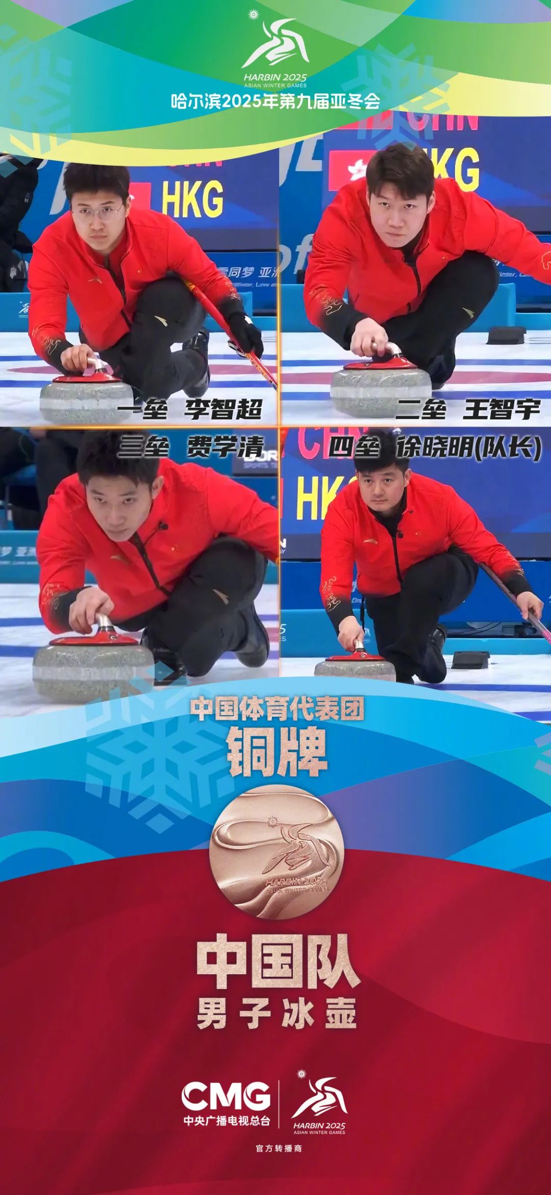 2月14日,哈尔滨亚冬会男子冰壶铜牌战,中国队对阵中国香港队。最终,中国队稳定发挥,以10∶3战胜中国香港队,获得铜牌。我校2010届毕业生徐晓明担任中国冰壶队教练兼队长。